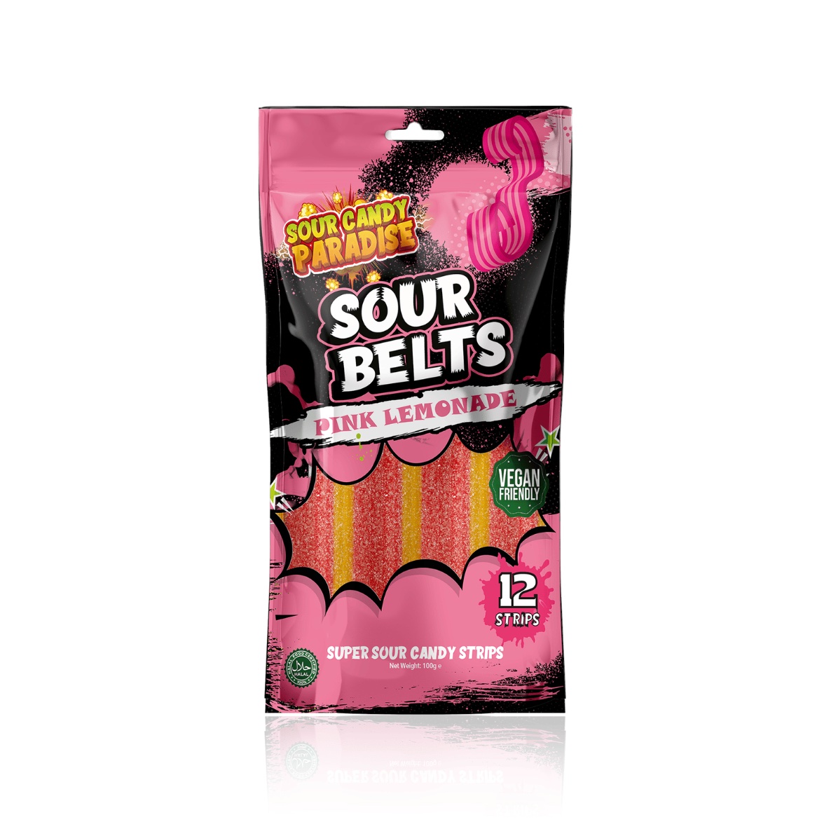Candy Paradise Sour Belts Pink Lemonade 12x100g